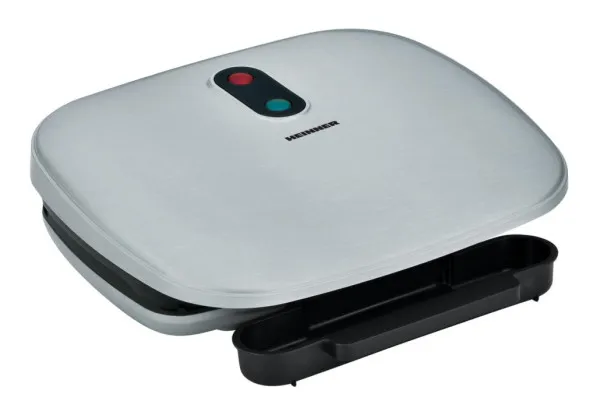 Električni roštilj Heinner HEG-F1000SL, 1000W, livene fiksne ploče, nelepljivi premaz, hladna ručka na dodir, svetlosni indikatori napajanja i spremnosti, srebrni