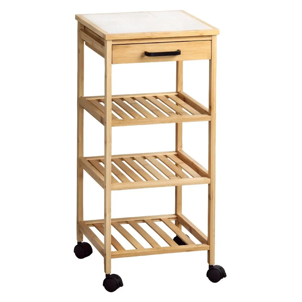- Opremljena je sa tri prostrane police, fiokom i izdržljivom radnom površinom od keramičkih pločica.
