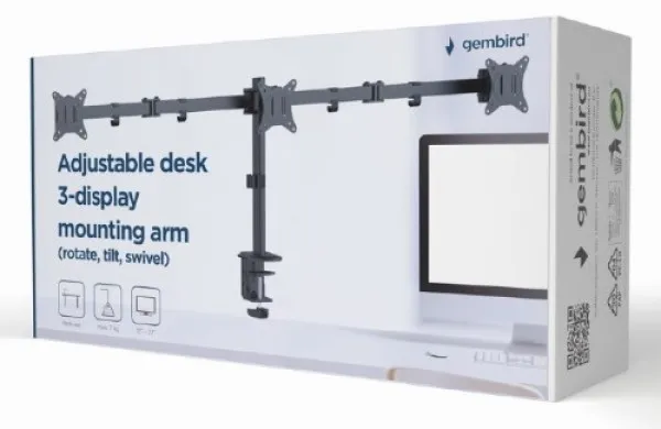 MA-D3-01 Gembird Podesivi stoni drzac za monitor sa tri ruke,tilt,rotacija, okretanje, 17-27 max.7kg