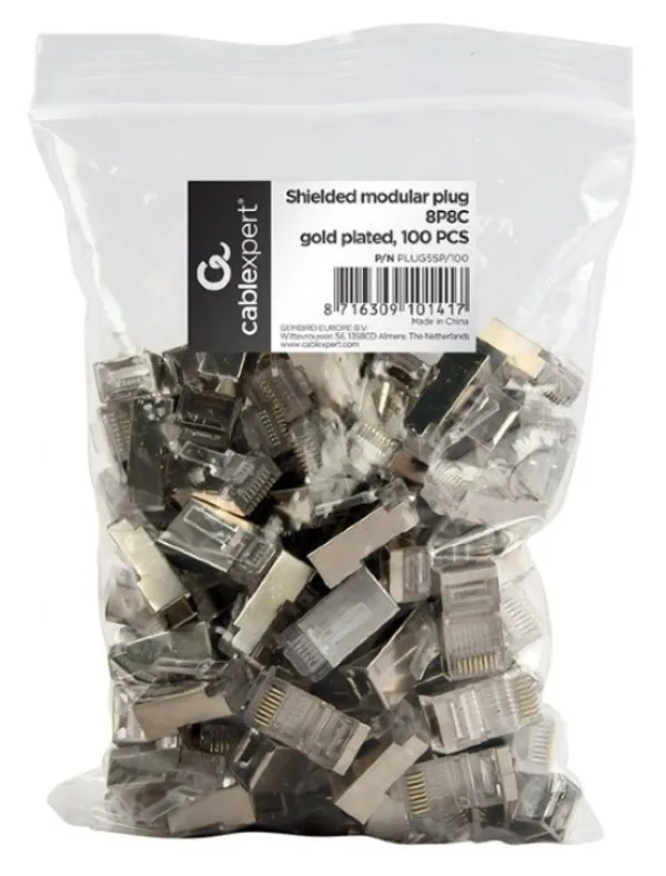 PLUG5SP/100 Gembird shielded modular 30u gold plated LAN konektor CAT5 FTP SFTP, RJ45(pak.100kom)