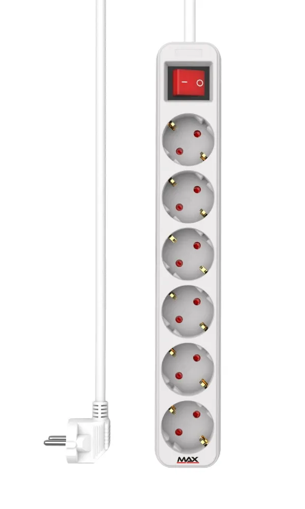 Produžni kabl sa prekidačem 6 utičnica 5m Max MPS-106S-5M Beli