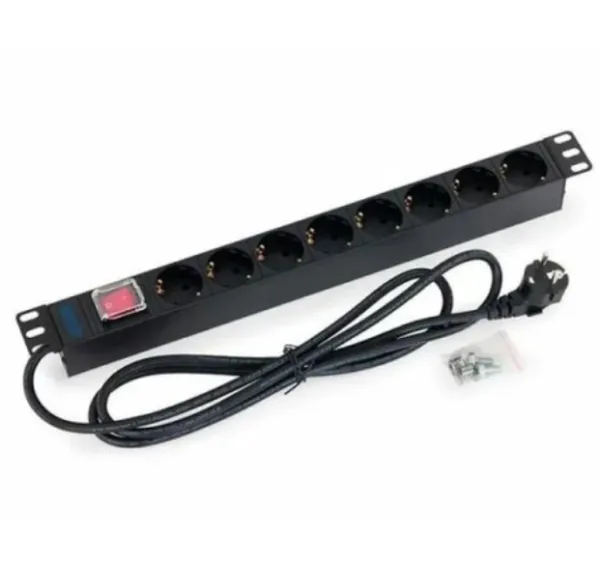 Razvodni PDU panel 19"/1U sa 8 uticnih mesta, prekidacem i kablom 1.8m sa utikacem.