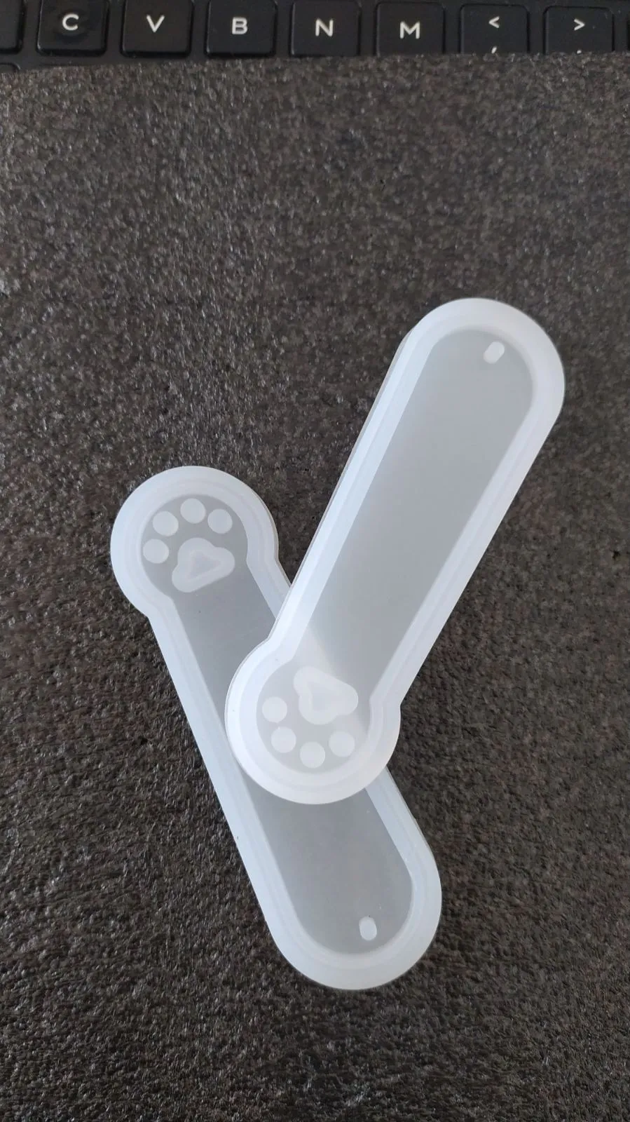 Silikonski kalup za izradu obeleživača knjiga, u obliku mačje šape.