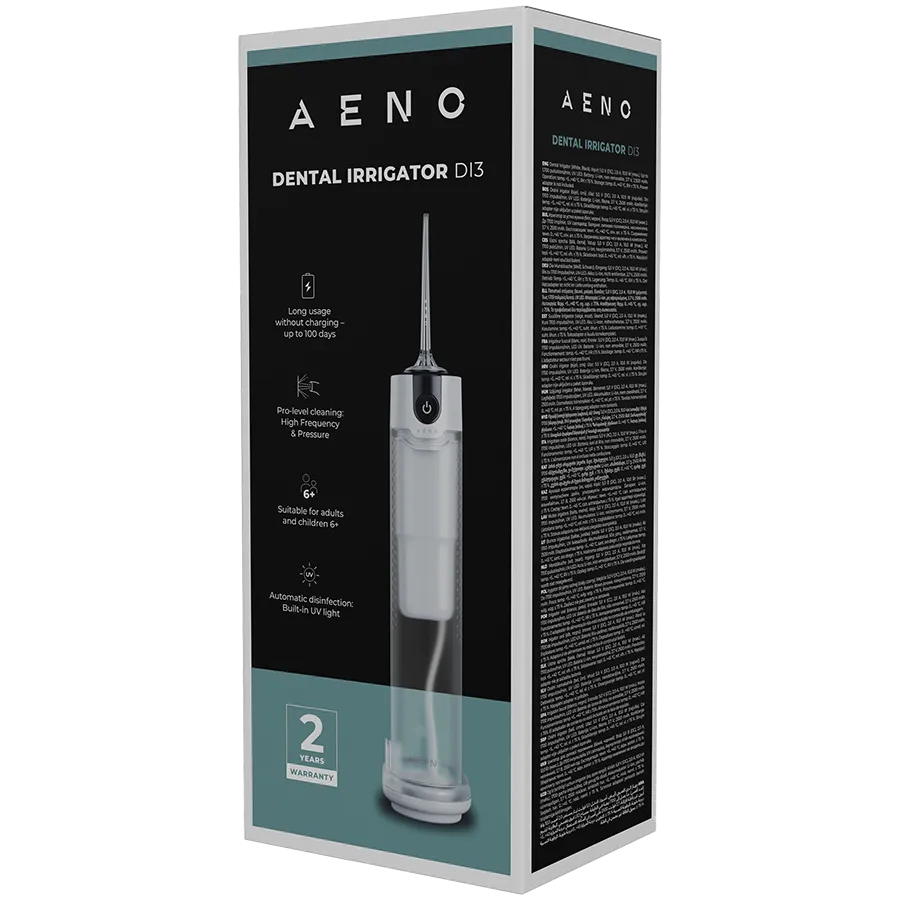 | Karakteristike | Memory function - the mode you used last time is enabledPerfect for cleaning hard-to-reach placesPrevents the formation of plaqueIdeal for gum, periodontic and orthodontic careShower safe use - IPX7 waterproofManeuverable - 360° rotating nozzleConvenient LED indicationPortable Design for Travel and Home UseLong usage without charging - up to 100 daysSuitable for adults and children from 6 years oldHigh Water pressure - up to 140 PSI5 flossing modes: Kids, Light, Medium, High, SpotHigh Frequency pulse - up to 1700 times/minKids modeIdeal for cleaning bracesMagnetic nozzles for all purposes included: Standard, Orthodontic, PeriodontalEasy to fill & clean: removable water tankEnlarged 240 ml water tankPro-level clean at home: High Frequency & PressureAutomatic disinfection: Built-in UV light |