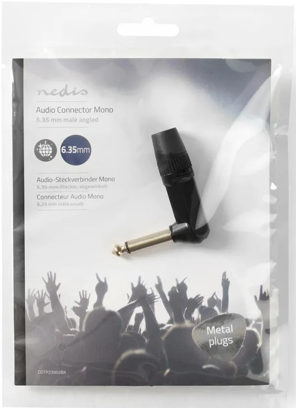 NEDIS COTP23902BK, Konektor 6,35 mm, Ugaoni, Muški, Niklovani, Preènik kablovskog ulaza: 8,0 mm, Alu,1 kom
