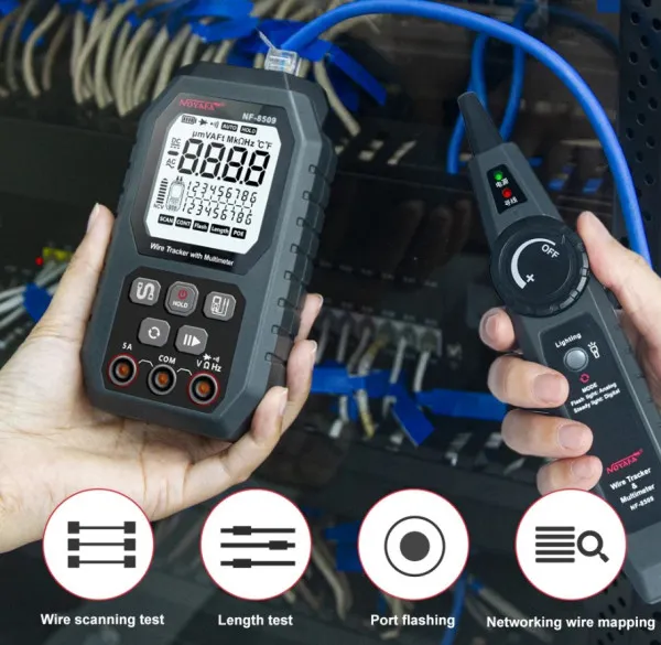Napredna tehnologija za pracenje žice. Iskusite efikasnost bez premca u pracenju kablova sa našom najsavremenijom tehnologijom za pracenje žica. Noiafa NF-8509 koristi najsavremenije karakteristike za preciznu identifikaciju i pracenje kablova kroz zidove, plafone i podove, omogucavajuci vam da bez napora odredite njihovu tačnu lokaciju.