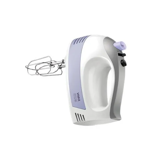 Ručni mikser HM-400 ima ergonomski dizajn i bele je boje. Sa snagom od 400 W i pet različitih brzina , ovaj mikser zadovoljiće sve vaše potrebe u kuhinji. Postoji i turbo prekidač za posebno brzo okretanje mešalica. Uz uređaj dolaze mešalice kao i kuke za mešanje testa.